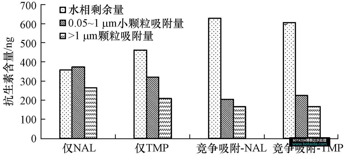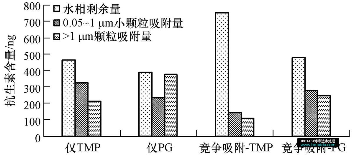 整體上,甲氧芐啶與青霉素G二者互相抑制,青霉素G對甲氧芐啶的抑制作用更明顯,特別是對于大顆粒吸附能力來說.但是,甲氧芐啶的存在卻增強(qiáng)了小顆粒對青霉素G的吸附能力.