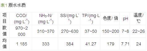 原水來自某生物制藥有限公司,該公司的綜合廢水處理采用“調(diào)節(jié)池+一級水解酸化池+CASS池+二級水解酸化池+接觸氧化池+二沉池”工藝,本試驗(yàn)用水取自該公司污水處理廠的一級水解酸化池出水,一級水解酸化池的進(jìn)水是經(jīng)過調(diào)節(jié)池和物理處理后的出水。該公司主要生產(chǎn)輔酶Q10,廢水主要污染物為生物發(fā)酵剩余的營養(yǎng)物質(zhì)、生物代謝產(chǎn)物等。原水的水質(zhì)水量變化較大,其成分復(fù)雜,碳氮營養(yǎng)比例失調(diào)(氮源過剩),硫酸鹽和懸浮物含量高,廢水帶有較重的顏色和氣味,易產(chǎn)生泡沫,含有具有抑菌作用的難降解物質(zhì)。原水水質(zhì)情況見表1。