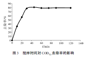 2. 4 攪拌反應(yīng)時(shí)間對(duì)CODCr去除率的影響