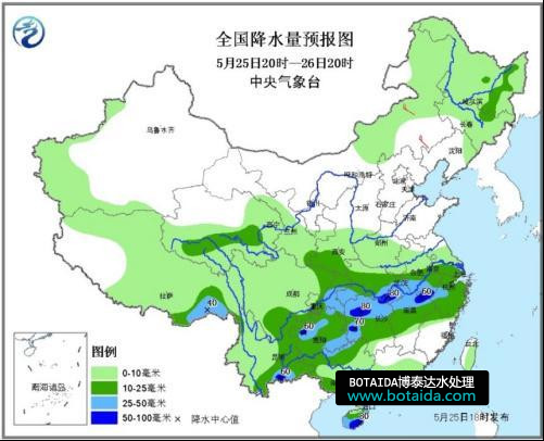 根據(jù)中央氣象臺預(yù)計,從25日起,主要降雨區(qū)域?qū)⒈碧е灵L江中下游一帶,西南地區(qū)東部、江南中北部、江漢、江淮等地的部分地區(qū)將進入降雨集中時段。上述大部地區(qū)在未來10天內(nèi)有7至8天都處于降雨狀態(tài)中,主要降雨過程出現(xiàn)在25日至27日和5月31日至6月2日。