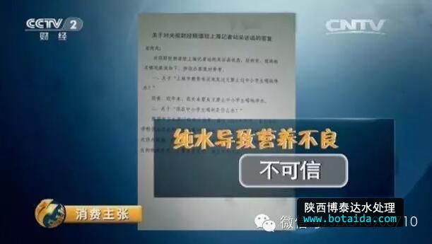 CCTV《消費主張》欄目,辟謠『喝純水會導致營養(yǎng)不良』。北京世紀壇醫(yī)院副院長指出:“人體內營養(yǎng)均衡不可能指望水里的那點成分。我們平常的營養(yǎng),靠水來供應的話,非常非常少,所以說,如果說長期喝純凈水,引起營養(yǎng)不良,那跟喝水一點關系也沒有。”