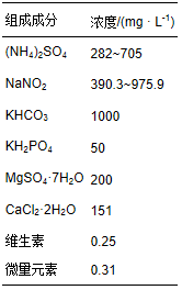 CANON工藝的啟動階段采用人工模擬高氨氮廢水.啟動完成后,利用某石化公司石油裂化催化劑生產(chǎn)廢水對微生物進(jìn)行馴化,廢水日產(chǎn)量約為15.6×103 m3.模擬高氨氮廢水的水質(zhì)如表 1所示(于英翠等,2012),微量元素成分見表 2.