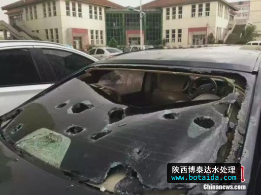 2016年6月13日,雞蛋大的冰雹襲擊山西長治,多輛汽車玻璃被砸碎。  中新網(wǎng) 圖