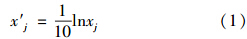式中,x′j 為指標j的規(guī)范值;xj為指標j的變換值,對4類水體和空氣指標j設定的變換式分別如式(2)~式(7)所示.