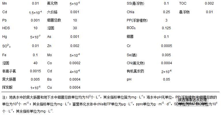表 1 4類水體95項指標的參照值