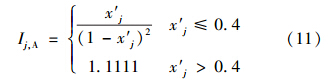 式中,Ij為由式(10)或式(11)計算得到的指標j的引力指數(shù)值;wj為指標j的歸一化權值,即滿足∑ m j=1 wj=1,它可以視實際問題需要,采用某種方法確定.一般情況下,只要各指標的規(guī)范值x′j差異不大,可視各指標為等權即可;但若最大指標規(guī)范值x′j,max與最小指標規(guī)范值x′j,min差異較大,則可采用如式(13)所示的對各指標規(guī)范值x′j的線性加權計算權值.