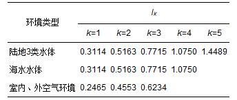 表 3 4類水體及室內(nèi)外空氣環(huán)境的引力普適指數(shù)的分級標準值Ik