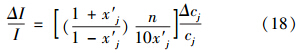 式中,分別表示引力指數(shù)的相對誤差和指標測值的相對誤差.式(19)可寫為: