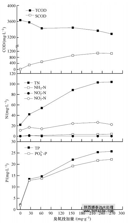 3.1.2 臭氧投加量對(duì)污泥中COD、氮、磷溶出的影響