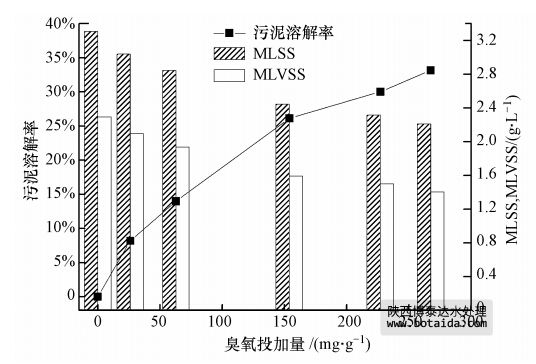 式中,[MLSS]o和[MLSS]t表示未經(jīng)臭氧處理及經(jīng)臭氧處理t時(shí)后污泥的MLSS(mg · L-1).