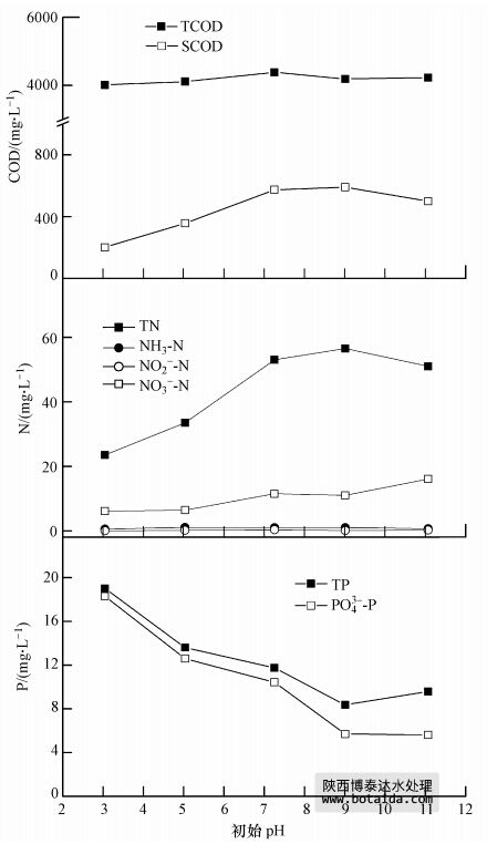 3.1.4 初始pH對(duì)臭氧處理后污泥中COD、氮和磷溶出的影響