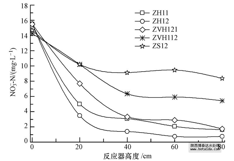 圖 5 NO-3-N隨反應(yīng)器高度的變化