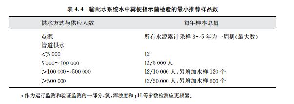 飲用水微生物質(zhì)量驗(yàn)證的建議最小樣本量如表4.4所示。