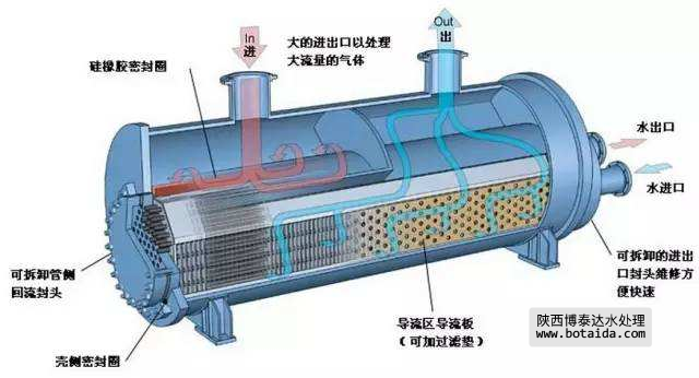 ② U形管式換熱器:它只有一塊管板,因此管子在受熱或冷卻時,可以自由伸縮。這種換熱器的結構簡單,但制造彎管的工作量較大,且由于管子需要有一定的彎曲半徑,管板的利用率較差,管內進行機械清洗困難,拆換管子也不容易,因此要求通過管內的流體是清潔的。這種換熱器可用于溫差變化大,高溫或高壓的場合。