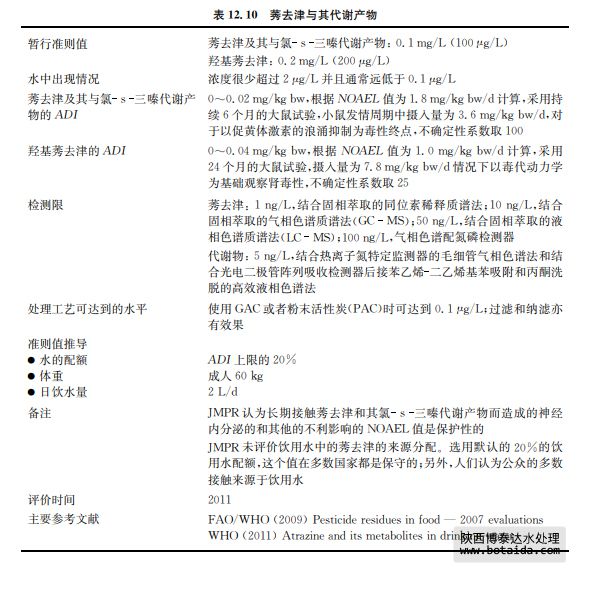 莠去津是一種選擇性三聚氯氰類除草劑,用于控制一年生闊葉雜草和禾本科雜草。莠 去津與氯 s 三嗪代謝產(chǎn)物———二乙烷基 莠去津、二異丙基 莠去津和二氨基氯三嗪,由于 莠去津作為預(yù)作用和早期的后處理除草劑使用而在地表水和地下水中被發(fā)現(xiàn)。代謝物羥基 莠去津在地下水中檢測到的比地表水中多(見表12.10)。