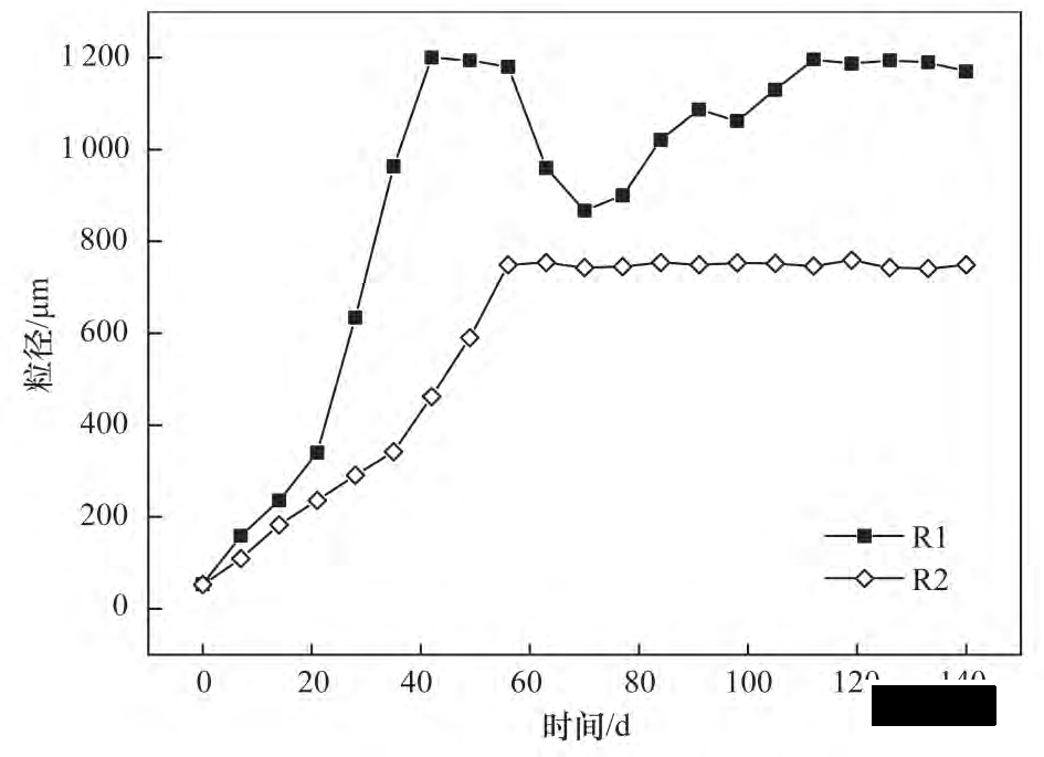 圖 2  R1 和 R2 運行期間粒徑變化