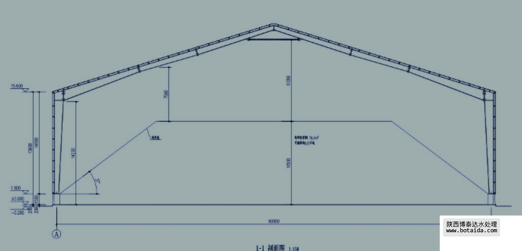 輔料堆棚項(xiàng)目長約 40米,寬 24 米,高 9.6 米的料倉。沿中心點(diǎn)兩側(cè)做兩條約 40 米長的噴霧降塵點(diǎn),共計(jì)約 80 米。