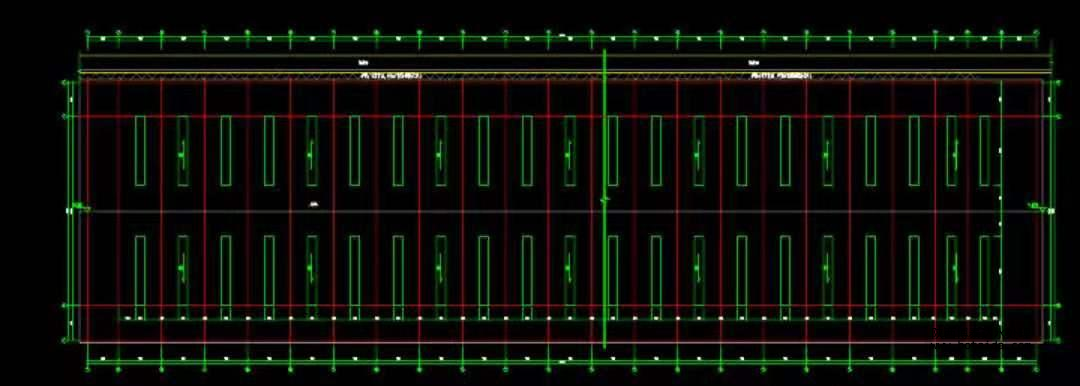 舊熟料堆棚長約 165.5,寬 45 米,高 12 米的料倉。沿兩邊立柱上方跨梁噴設(shè),跨梁共計(jì)數(shù)量 24 個、鋪設(shè) 23 個,共計(jì)長度約 1035 米。
