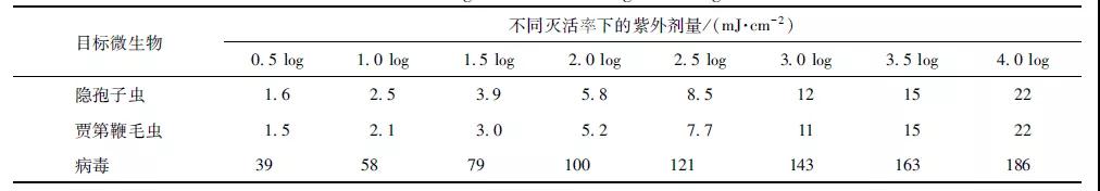 表2不同目標(biāo)微生物所需的紫外線劑量